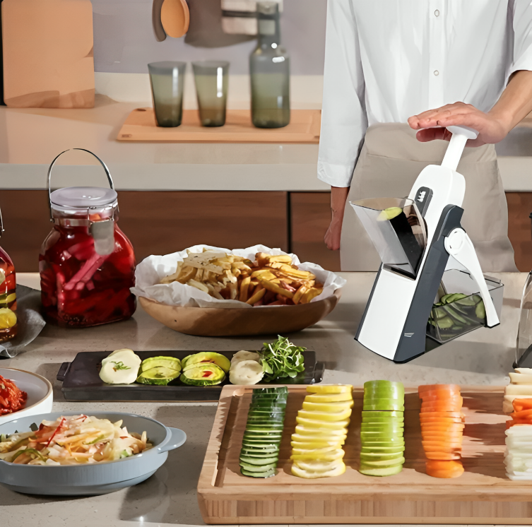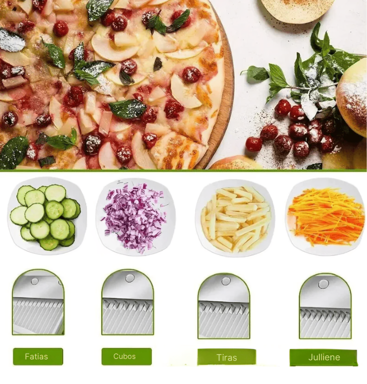 Transforme sua cozinha com o SliceMaster™, o fatiador 5 em 1 que vai facilitar o seu dia a dia com qualidade e eficiência!